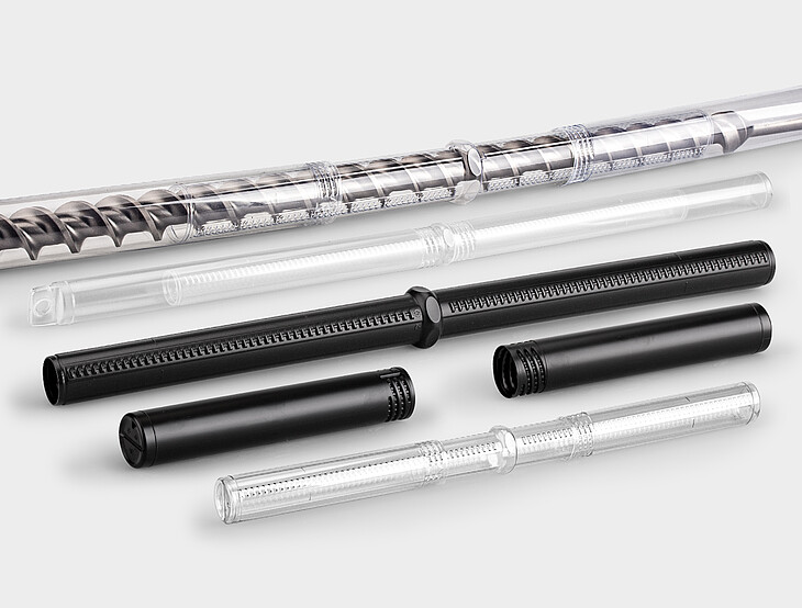 The flexible length adjustment allows the tube to adapt to the contents inside. The middle part determines the size while the outer parts snap into place at the appropriate length. Depending on length requirements, standard and additional outer parts are available for use. If you need the same packaging in different lengths, we have a solution to save you on extra ordering, logistics, and storage space!
